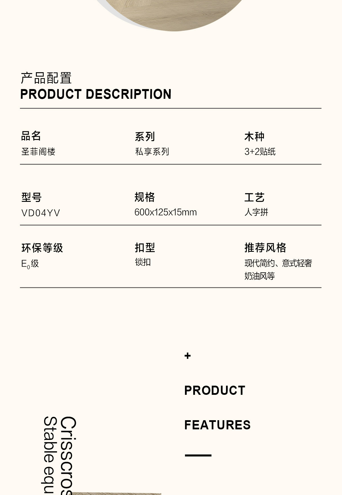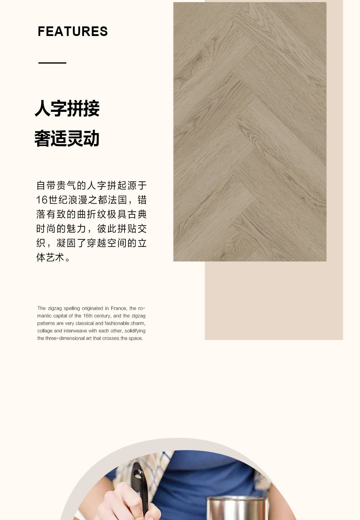| 独特工艺 | 人字拼 |